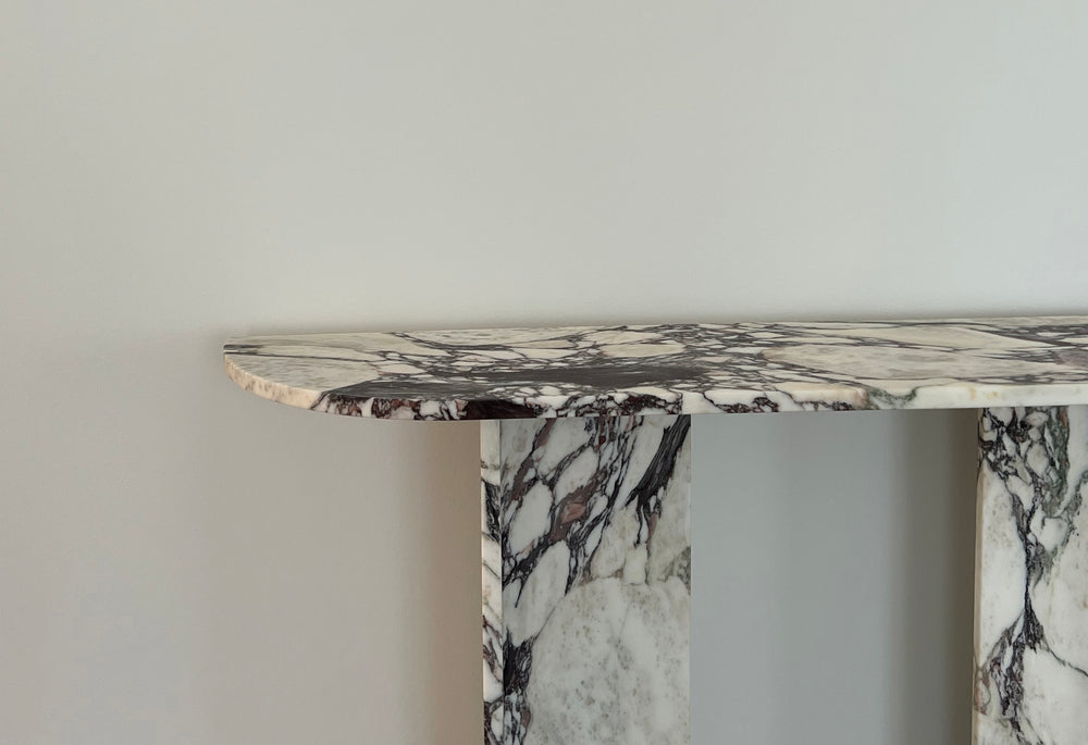 Calacatta Viola marmor er en sjælden og smuk natursten højt værdsat for sit luksuriøse udseende. Dens overvejende hvide baggrund med flotte violette og grå årer skaber en fantastisk kontrast og tilføjer dybde til ethvert rum. De violette og grå årer løber gennem stenen i et smukt mønster, der ikke ligner nogen anden marmor. Dette giver Calacatta Viola marmor en uovertruffen visuel effekt, der er både modig og sofistikeret på samme tid.