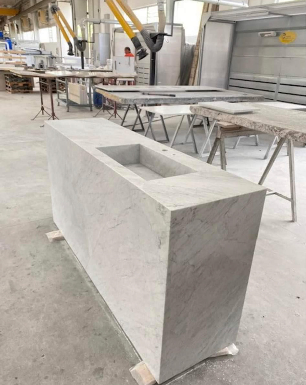 Da marmor er et naturligt materiale, er der ikke to produkter, der er ens. Derfor lægges der stor vægt på at udvælge pladerne til produktion.